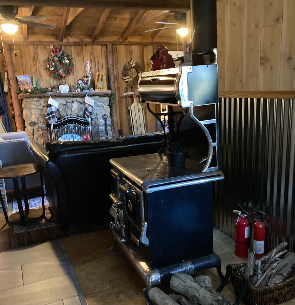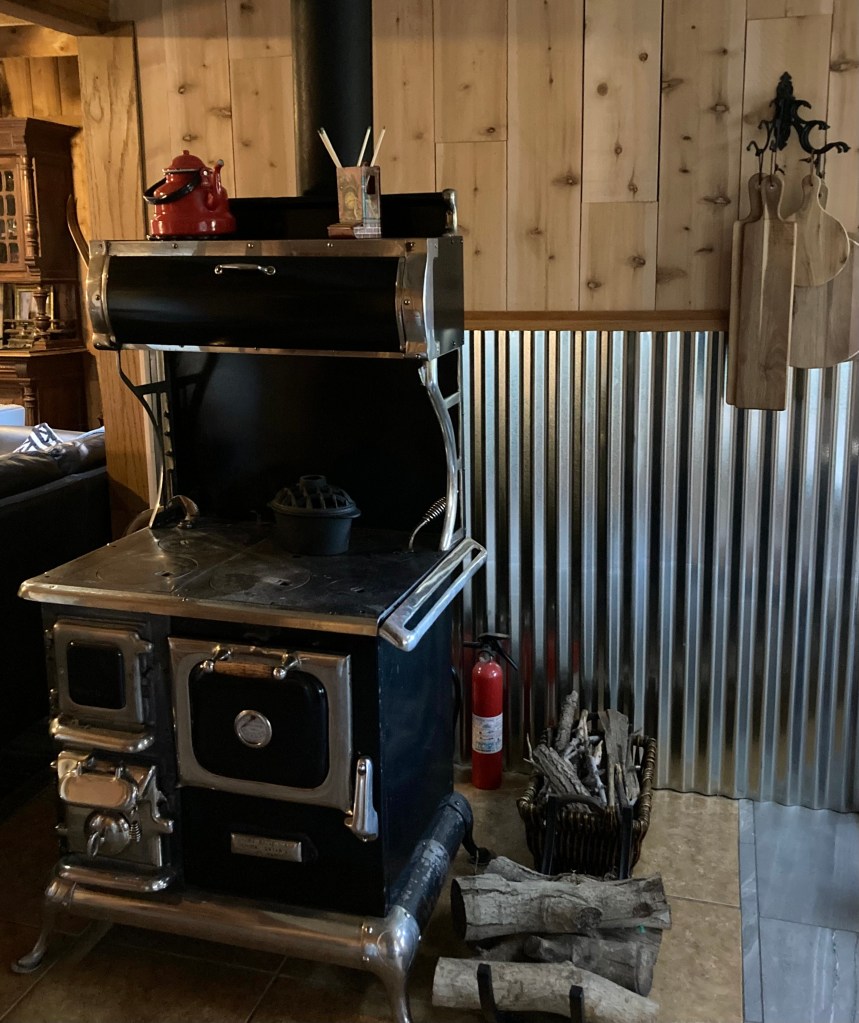 The vintage cook stove provides plenty of warmth for the dining and living room area. But if keeping a fire burning is not your thing, the wall heater will do the trick.